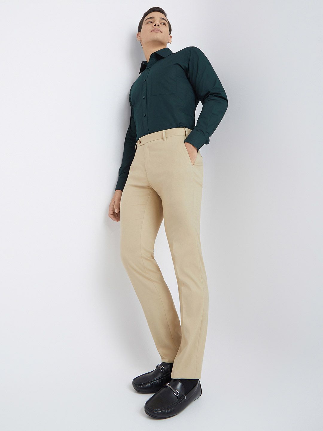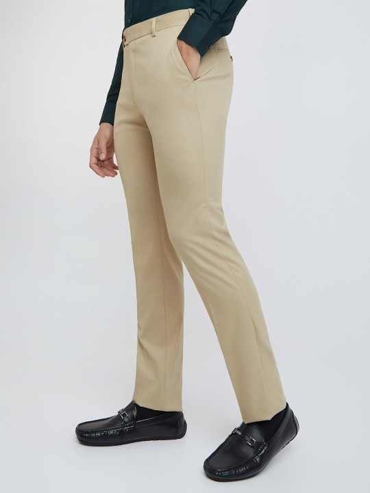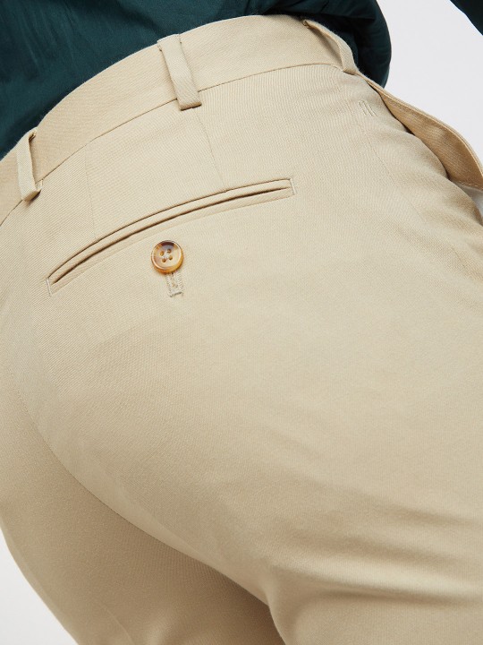 - Flat-front, with no pleats design